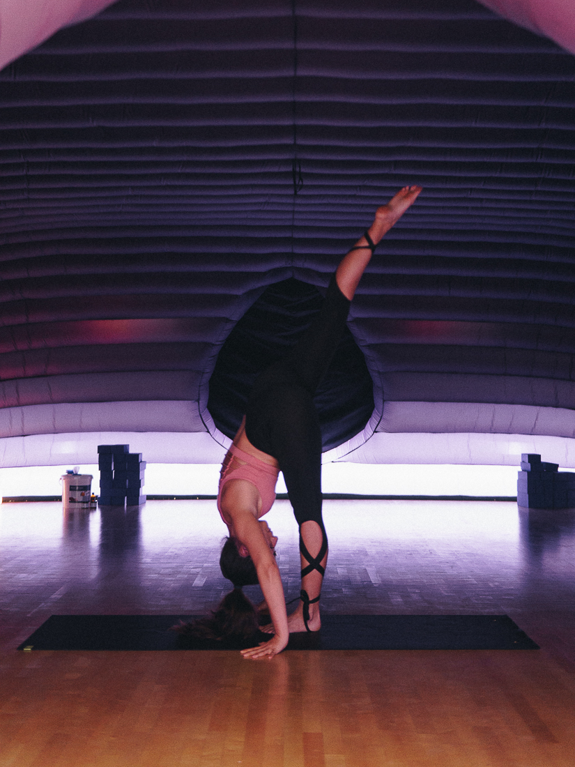 Durch die Wärme im Zelt sind die Muskeln schneller aufgewärmt und man kommt auch sehr viel leichter in die Posen hinein.