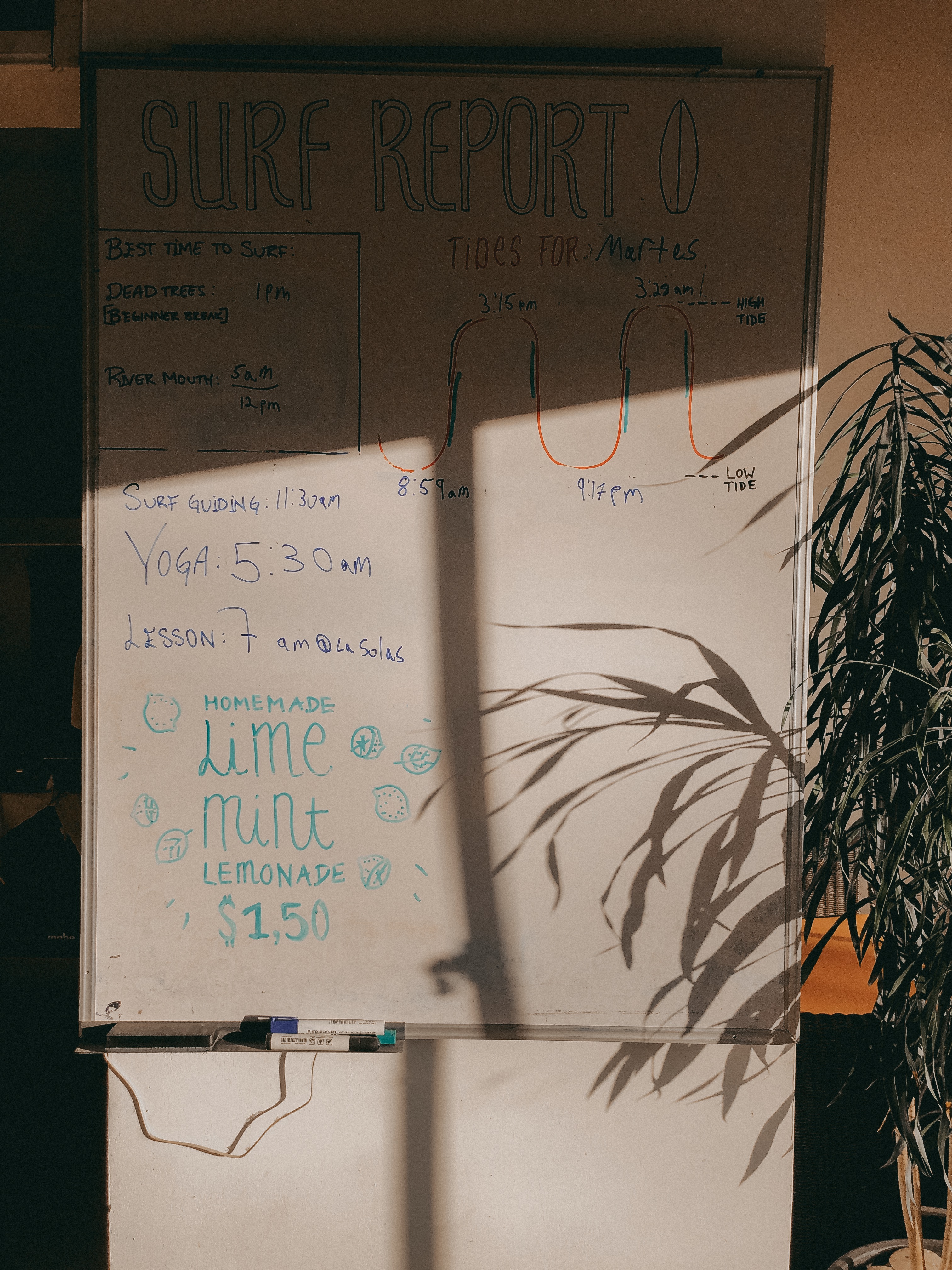 Das selbst gilt: Frühstück und Dinner sind inkludiert (vegan ist auch hier kein Problem), für Mittagsoptionen zahlt man extra. Die Möglichkeiten in der Umgebung sind hier quasi nicht vorhanden aber ein Lunchbreak nach SJDS ist vor oder nach dem Surf oft gut möglich.