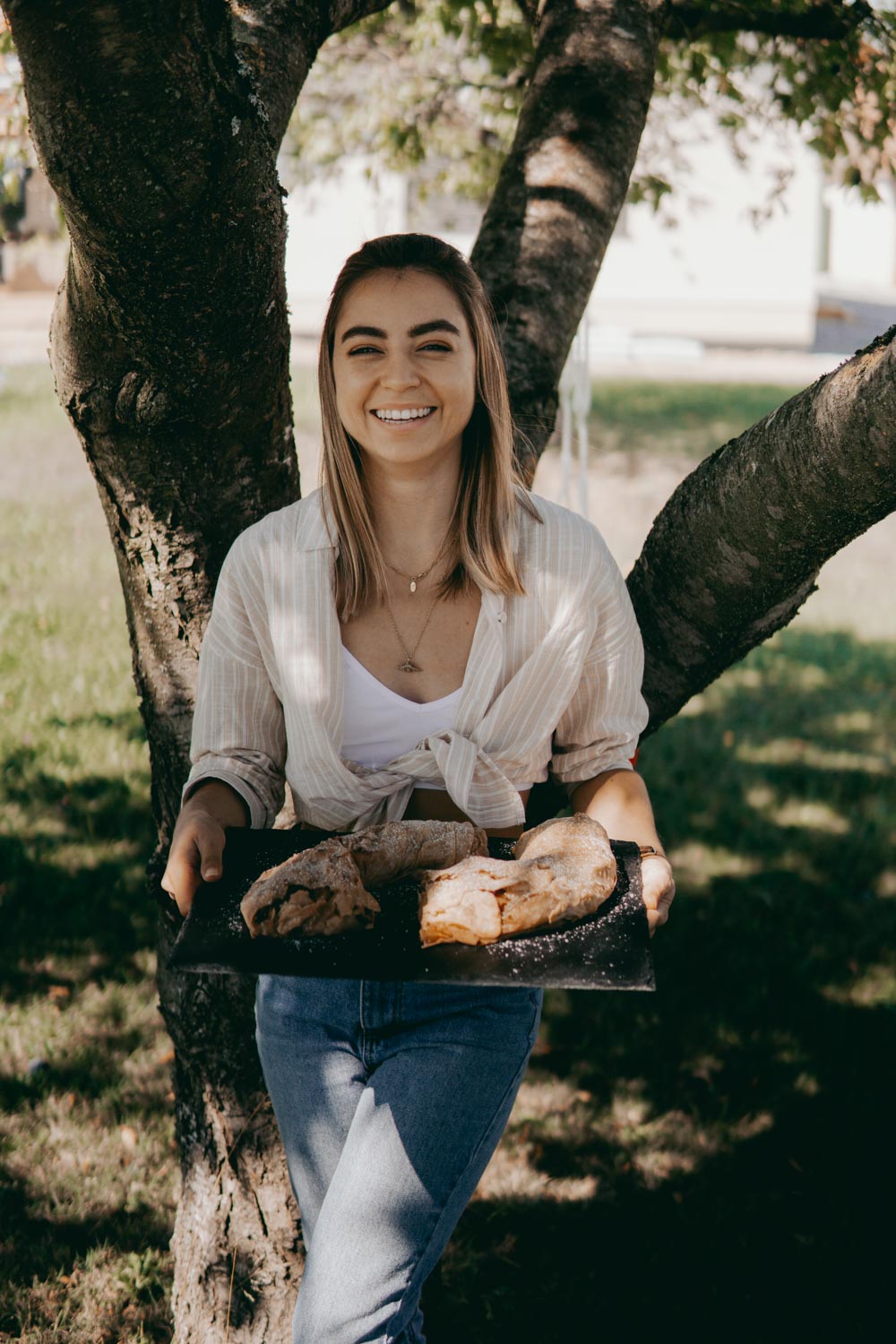 Die perfekte Herbst-Jause ist wohl ein Apfelstrudel – dieser geht schnell, einfach und ist ruckzuck auch für Gäste gemacht. Vor einigen Wochen war ich zu Besuch bei einer Apfelfarm und durfte dort, zu Besuch beim Bio-Apfelhof im steirischen St. Ruprecht an der Raab, Frau Taurer-Schaffler beim Backen über die Schulter blicken. Das Rezept für diesen einfach traumhaften Apfelstrudel kam mit zu mir nach Wien – und wurde gleich nachgebacken!