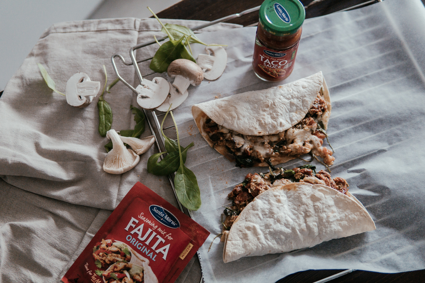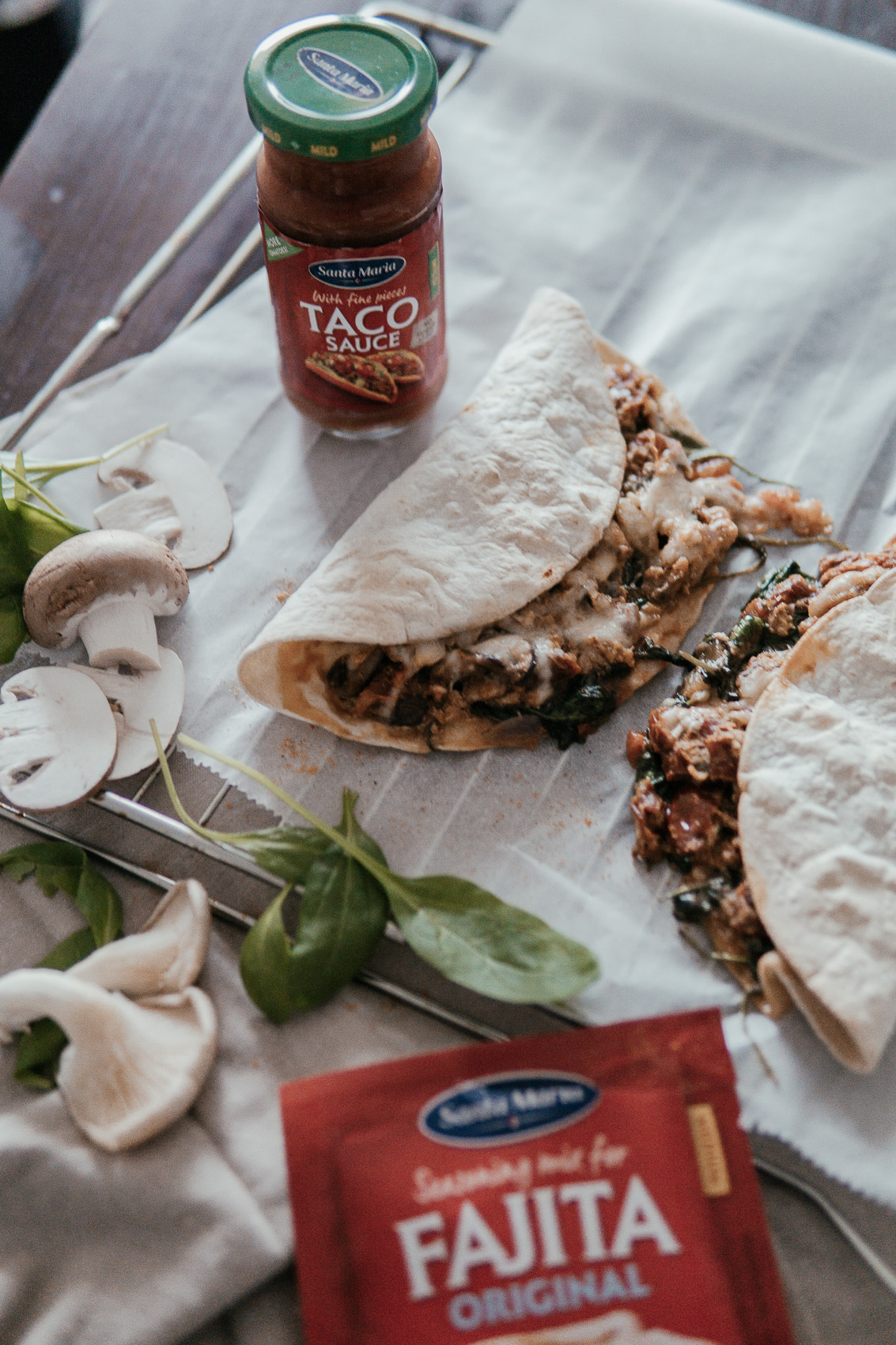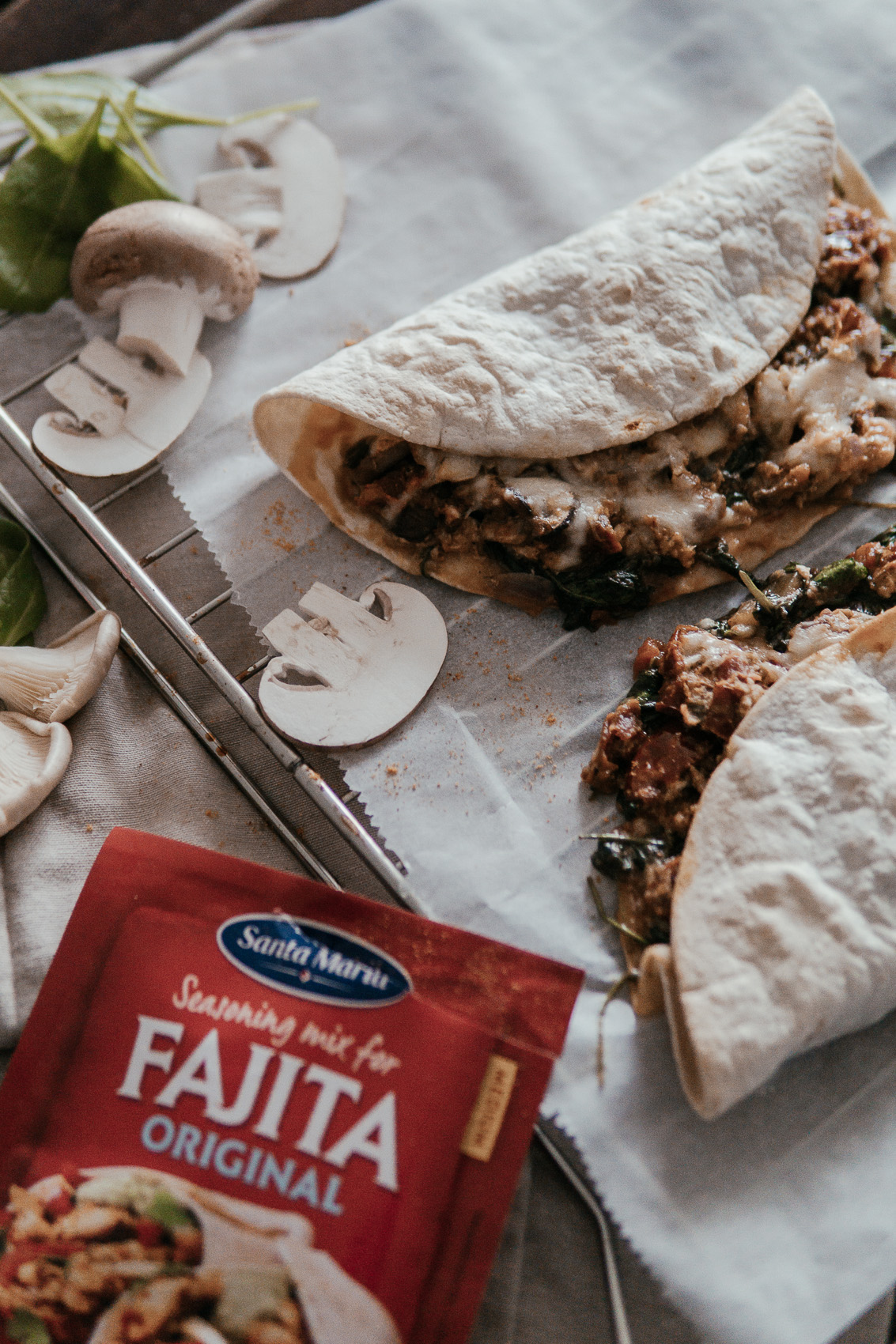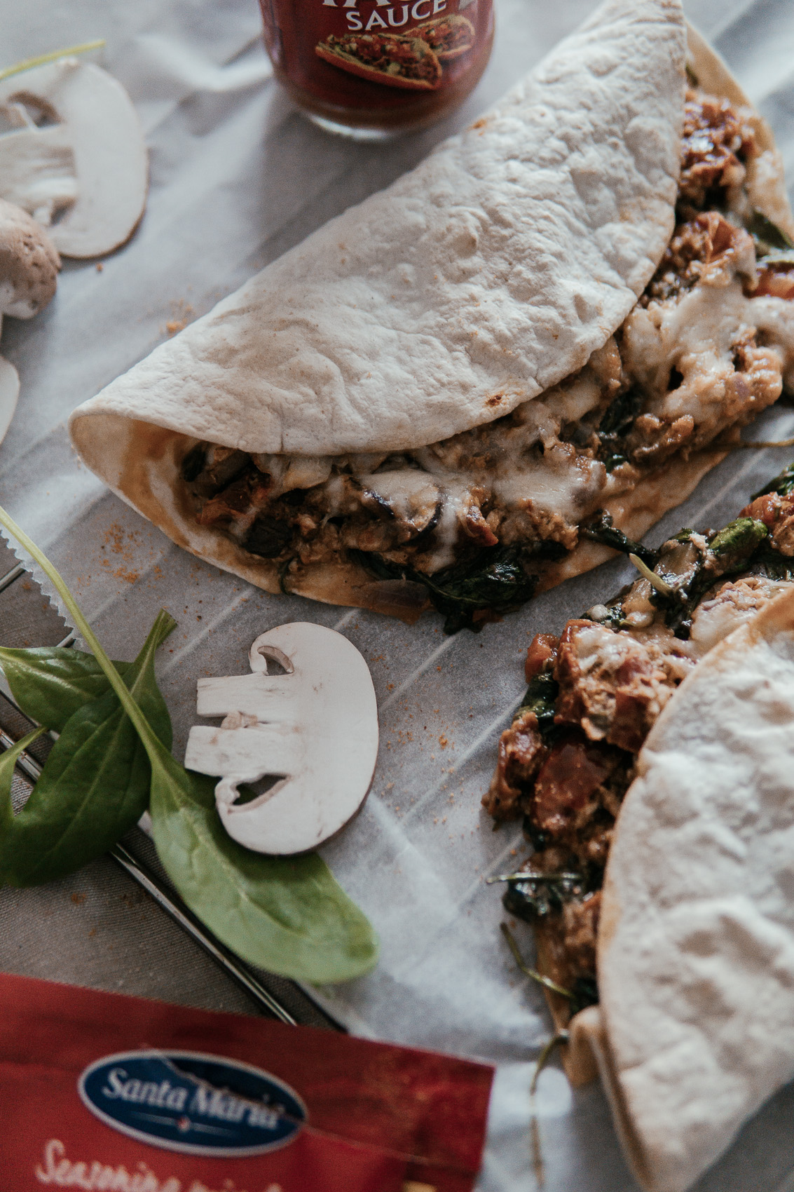 Quesadillas mit Spinat und Pilzen